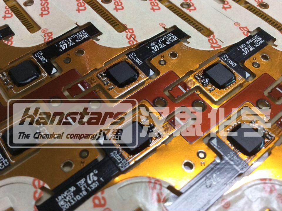 針對FPC的底部填充,漢思化學自主開發(fā)了FPC專用系列底部填充膠,活動速度快,工作壽命長、翻修性能佳,能有效降低由于芯片與基板的熱澎脹系數不匹配或外力造成的沖擊,提高產品的可靠性,更好地解決FPC制造中芯片底部填充、FPC補強問題等。漢思化學FPC芯片底部填充膠質量穩(wěn)定,清潔高效,滿足華為新雙85、500H測試需求,產品通過SGS認證,獲得ROHS/HF/REACH/7P檢測報告。 整體環(huán)保標準比行業(yè)高出50%,從2015年開始,漢思也與華為達成了長達幾年的穩(wěn)定合作關系。